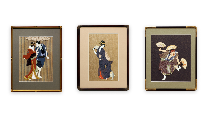 タッチはもちろん、着物の色や柄選びを工夫し、作品全体で原画の雰囲気を再現することを追求しています。